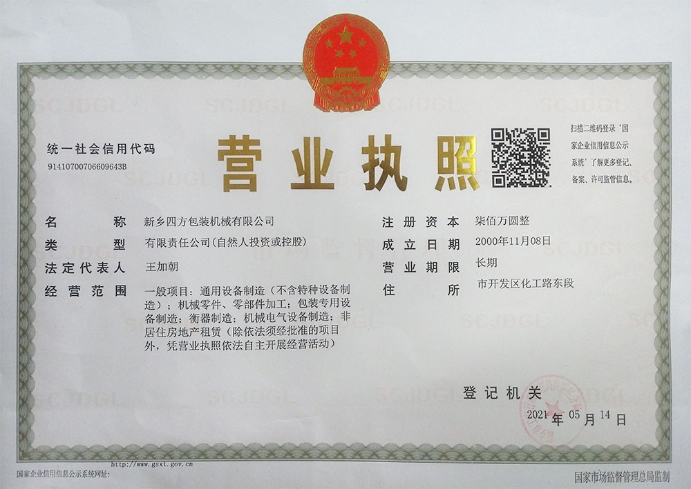 新鄉(xiāng)四方包裝機械有限公司創(chuàng)建于1998年,注冊于新鄉(xiāng)市高新技術(shù)開發(fā)區(qū),是專注于定量包裝秤、重量檢測秤和全自動包裝機研發(fā)、生產(chǎn)、銷售為一體的科技型民營企業(yè)。固定資產(chǎn)2000多萬元,土地10000多平方米,廠房10000多平方米,年產(chǎn)各類包裝機1000多臺(套),年銷售額2000多萬元。包裝秤產(chǎn)品連續(xù)多年成為洗衣粉行業(yè)銷量佼佼者,在調(diào)味品、食品、種子等行業(yè)占有很大市場份額。